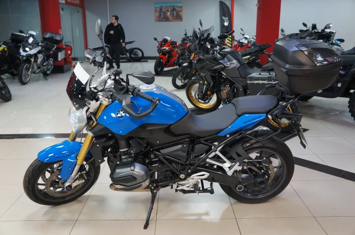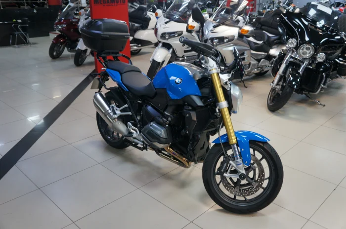 Мотоцикл BMW R1200R, 2016 года в мотосалоне MEGAMOTO. Пробег мотоцикла 6 348, цвет синий, растаможен с ПТС и готов к продаже. Чтобы купить BMW R1200R, уточнить все технические детали или посмотреть мотоцикл, вы можете оформить заказ на сайте или связаться с нашими менеджерами любым удобным способом. При обращении указывайте, пожалуйста, артикул 156022
