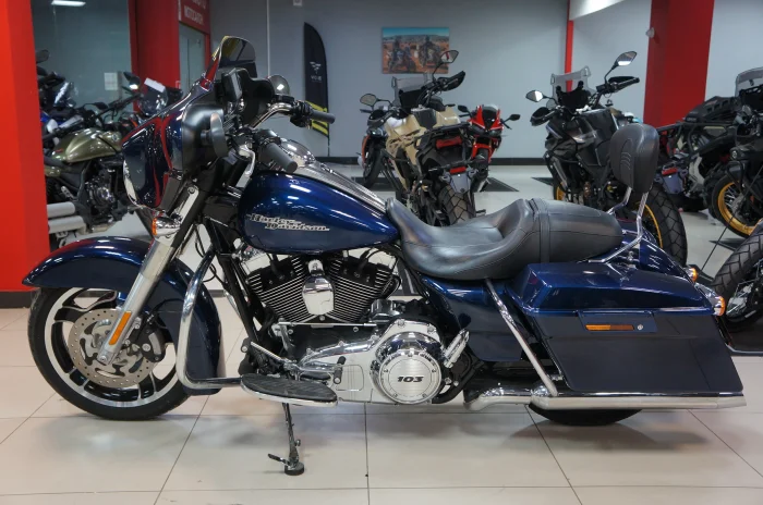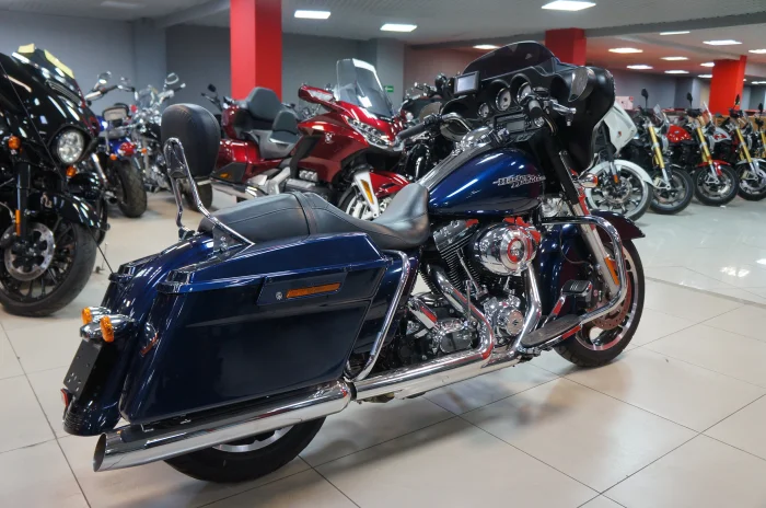 Мотоцикл HARLEY-DAVIDSON STREET GLIDE FLHX1690, 2011 года в мотосалоне MEGAMOTO. Пробег мотоцикла 13 964, цвет синий, растаможен с ПТС и готов к продаже. Чтобы купить HARLEY-DAVIDSON STREET GLIDE FLHX1690, уточнить все технические детали или посмотреть мотоцикл, вы можете оформить заказ на сайте или связаться с нашими менеджерами любым удобным способом. При обращении указывайте, пожалуйста, артикул V155006