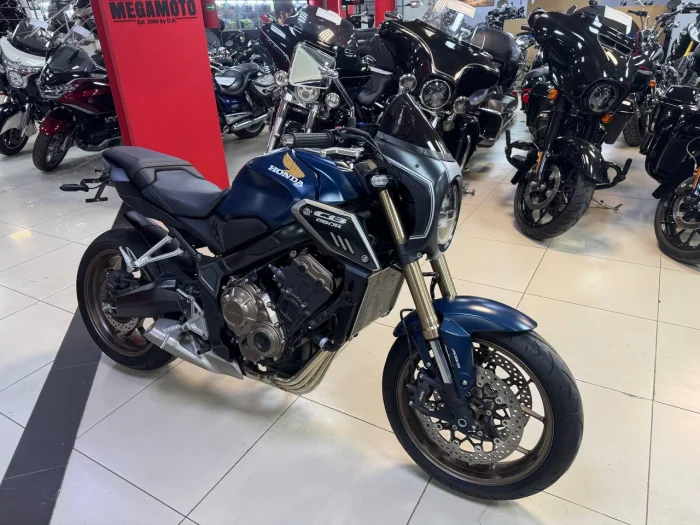 Мотоцикл HONDA CB650R, 2021 года в мотосалоне MEGAMOTO. Пробег мотоцикла 8 877, цвет синий, растаможен с ПТС и готов к продаже. Чтобы купить HONDA CB650R, уточнить все технические детали или посмотреть мотоцикл, вы можете оформить заказ на сайте или связаться с нашими менеджерами любым удобным способом. При обращении указывайте, пожалуйста, артикул 150032