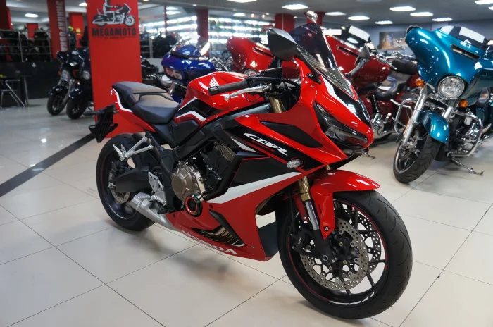 Мотоцикл HONDA CBR650R, 2021 года в мотосалоне MEGAMOTO. Пробег мотоцикла 3 039, цвет Красный, растаможен с ПТС и готов к продаже. Чтобы купить HONDA CBR650R, уточнить все технические детали или посмотреть мотоцикл, вы можете оформить заказ на сайте или связаться с нашими менеджерами любым удобным способом. При обращении указывайте, пожалуйста, артикул 160013