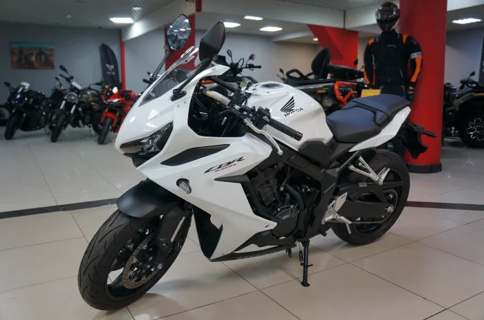 Мотоцикл HONDA CBR650R, 2023 года в мотосалоне MEGAMOTO. Пробег мотоцикла 403, цвет белый, растаможен с ПТС и готов к продаже. Чтобы купить HONDA CBR650R, уточнить все технические детали или посмотреть мотоцикл, вы можете оформить заказ на сайте или связаться с нашими менеджерами любым удобным способом. При обращении указывайте, пожалуйста, артикул 160010