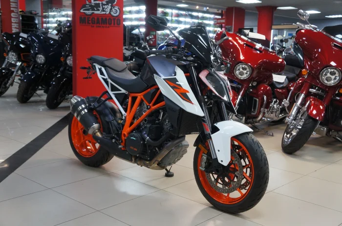 Мотоцикл KTM 1290 SUPER DUKE R, 2018 года в мотосалоне MEGAMOTO. Пробег мотоцикла 6 209, цвет белый, оранжевый, растаможен с ПТС и готов к продаже. Чтобы купить KTM 1290 SUPER DUKE R, уточнить все технические детали или посмотреть мотоцикл, вы можете оформить заказ на сайте или связаться с нашими менеджерами любым удобным способом. При обращении указывайте, пожалуйста, артикул 164007