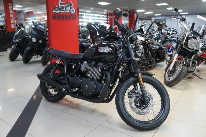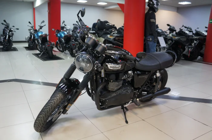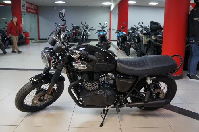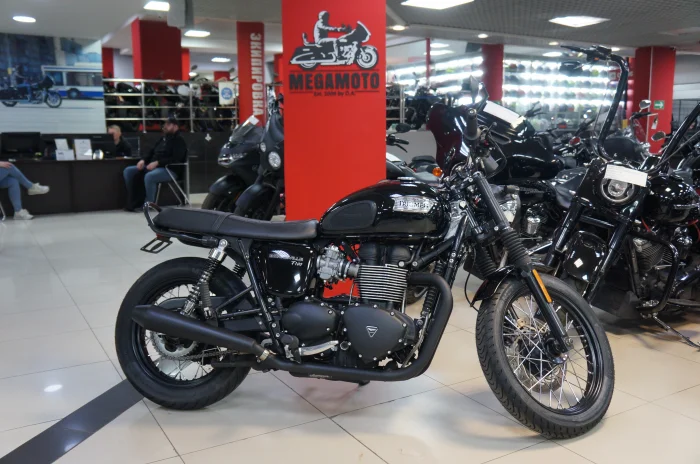 Мотоцикл TRIUMPH BONNEVILLE T100, 2014 года в мотосалоне MEGAMOTO. Пробег мотоцикла 23 288, цвет черный, растаможен с ПТС и готов к продаже. Чтобы купить TRIUMPH BONNEVILLE T100, уточнить все технические детали или посмотреть мотоцикл, вы можете оформить заказ на сайте или связаться с нашими менеджерами любым удобным способом. При обращении указывайте, пожалуйста, артикул K01912