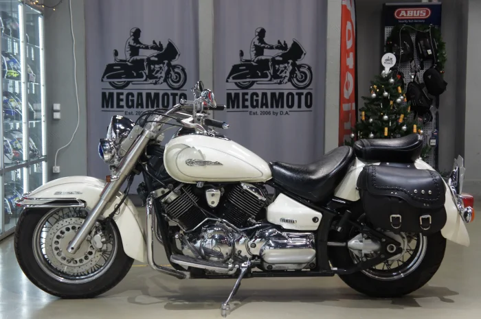 Мотоцикл YAMAHA DRAGSTAR1100 CLASSIC, 2003 года в мотосалоне MEGAMOTO. Пробег мотоцикла 48 600, цвет белый, растаможен с ПТС и готов к продаже. Чтобы купить YAMAHA DRAGSTAR1100 CLASSIC, уточнить все технические детали или посмотреть мотоцикл, вы можете оформить заказ на сайте или связаться с нашими менеджерами любым удобным способом. При обращении указывайте, пожалуйста, артикул K24884