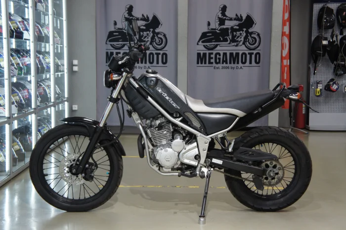 Мотоцикл YAMAHA XG250 TRICKER, 2004 года в мотосалоне MEGAMOTO. Пробег мотоцикла 28 674, цвет черный, растаможен с ПТС и готов к продаже. Чтобы купить YAMAHA XG250 TRICKER, уточнить все технические детали или посмотреть мотоцикл, вы можете оформить заказ на сайте или связаться с нашими менеджерами любым удобным способом. При обращении указывайте, пожалуйста, артикул S71336