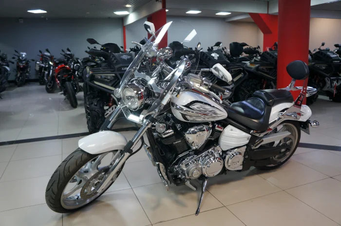 Мотоцикл YAMAHA XV1900, 2013 года в мотосалоне MEGAMOTO. Пробег мотоцикла 14 909, цвет белый, растаможен с ПТС и готов к продаже. Чтобы купить YAMAHA XV1900, уточнить все технические детали или посмотреть мотоцикл, вы можете оформить заказ на сайте или связаться с нашими менеджерами любым удобным способом. При обращении указывайте, пожалуйста, артикул K01904